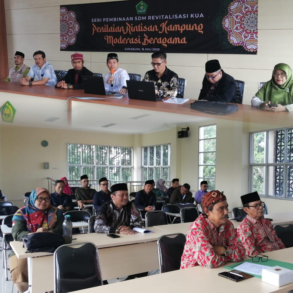 Kementerian Agama Kota Sukabumi melalui Seksi Bimbingan Masyarakat Islam melaksanakan penilaian rintisan Kampung Moderasi Beragama (KMB), bertempat di Aula Gedung PLHUT Kemenag Kota Sukabumi, Kamis (13/07).