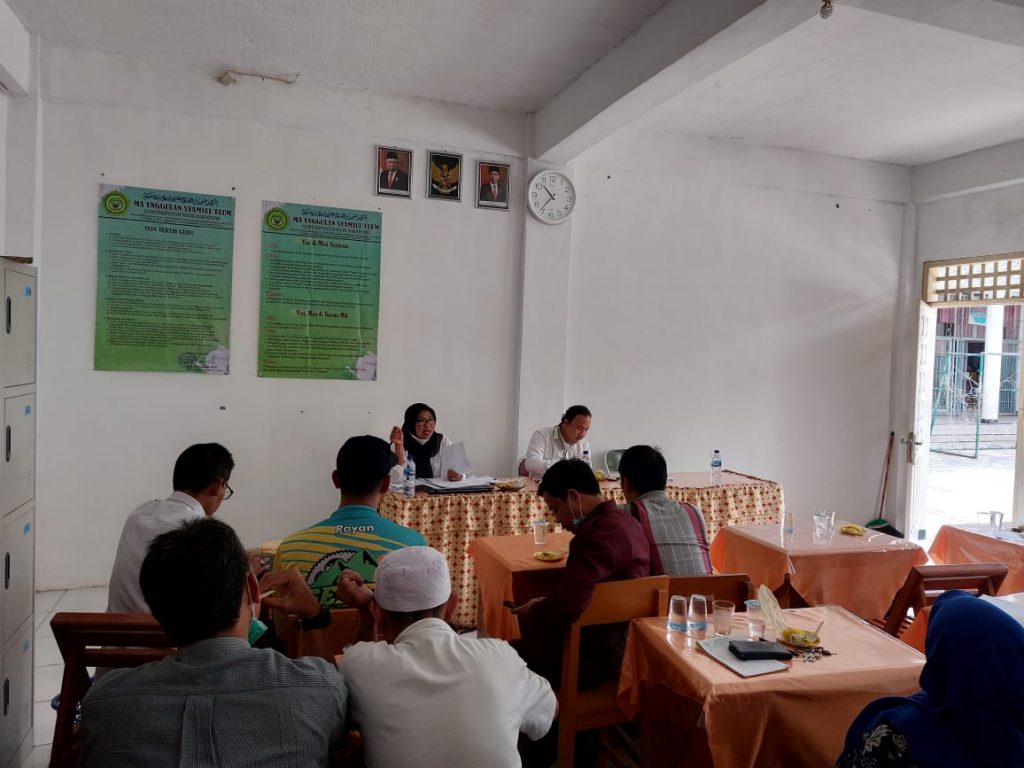 Senin, 13/12, kepala Madrasah Firda Priyadi, M.Pd. memberikan arahan kepada seluruh pegawai MTs.Syamsul ‘Ulum yang didampingi oleh Wakamad Kurikulum bapak Rilah Karmilah, S.Pd.I kemudian kamad memberikan kesempatan kepada seluruh pegawai, jika ada hal-hal yang ingin dipertanyakan terkait dengan pembelajaran ditahun ajaran baru. “karena ini masih dalam kondisi covid, pembelajaran ditahun ajaran 2021/2022 Tatap Muka Terbatas. Kira-kira seperti apa proses kegiatan pembalajaran yang dilaksanakan oleh bapak/ibu dewan guru. Apakah ada kendala, atau seperti apa. Saya perlu masukkan dari seluruh tenaga pendidik di MTs. Syamsul ‘Ulum ini,”ungkap Firda Priyadi, M.Pd Pada kesempatan itu juga Waka. Kurikulum ibu Rilah Karmilah, S.Pd.I menyampaikan “terkait dengan pembelajaran yang kurang lebih lima bulan dilaksanakan, kemaren sudah disampaikan agar guru dan wali kelas bisa mengetahui  siswa mana yang aktif dan mana yang tidak. Jika ada kendala dari siswa dalam hal pembejaran Tatap Muka Terbatas ini, bisa disampaikan kepada kami agar nanti kita bisa bersama-sama mencari solusi atau jalan keluarnya,”ungkapnya.